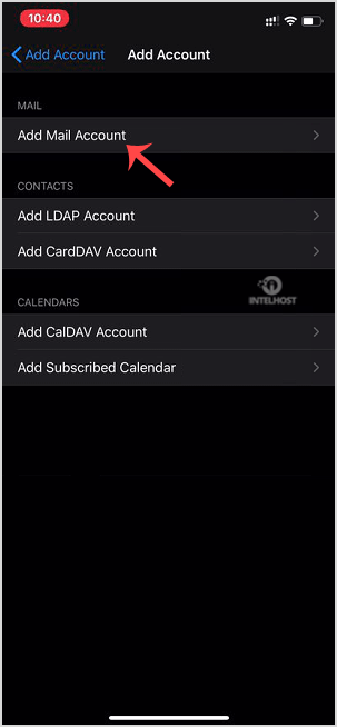 5. Tap on Add Mail Account.