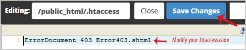 8. Make changes to your .htaccess file and then click on the Save Changes button.