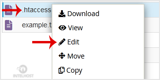 6. Right-click on the .htaccess file and then on Edit in the Context Menu.
