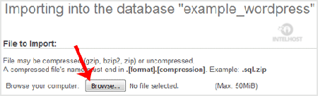 6. Under File to Import click on the Browse button, Select SQL file from your PC.