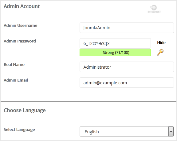 • Admin Username: Your new Bolt username (for security reason do not use the Administrator or the Admin username.)