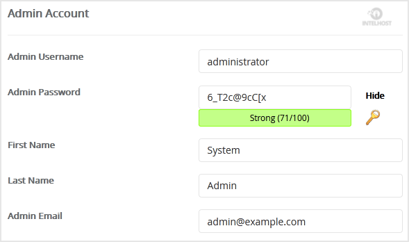 - Admin Username: Your new MovableType username (for security reason do not use the Administrator or the Admin username.)