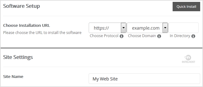 • Choose Installation URL: Choose the appropriate protocol/domain. Inside the «In Directory» field, should you want to install this in a directory, i.e., example.com/directory, enter the directory name. Otherwise, leave it blank to install in your main domain, i.e., example.com
