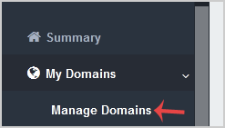 3. After a successful login, select Manage Domains from the My Domains drop-down menu.